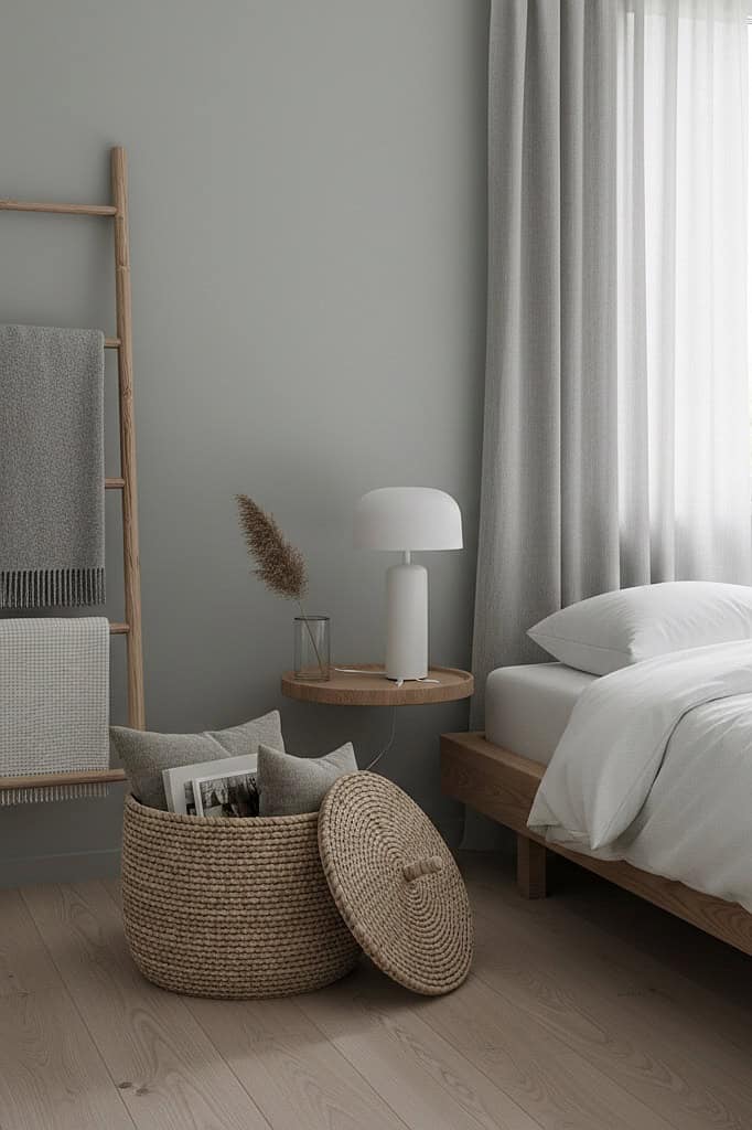 Every item in a Scandi-style room should have a purpose. Choose decor that is both beautiful and functional. A simple wooden ladder can be used to hang blankets or towels. A stylish woven basket can hold extra pillows or magazines. This approach ensures the room feels curated and intentional, not just decorated.