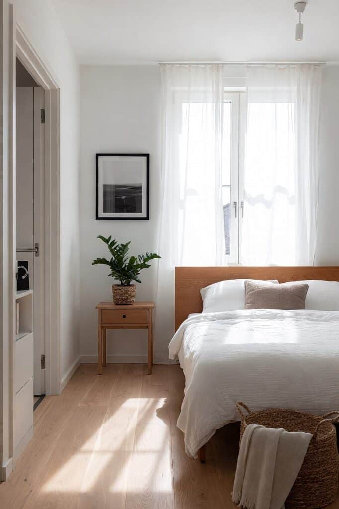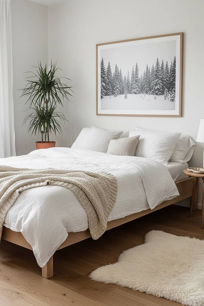 Wood is a cornerstone of Scandinavian design, connecting the space to nature. Opt for light-colored woods like pine, ash, birch, or light oak. A simple wooden bed frame, a small nightstand, or even a picture frame can bring an organic warmth that beautifully contrasts with the crisp, neutral walls. It’s a tactile element that feels honest and grounding.