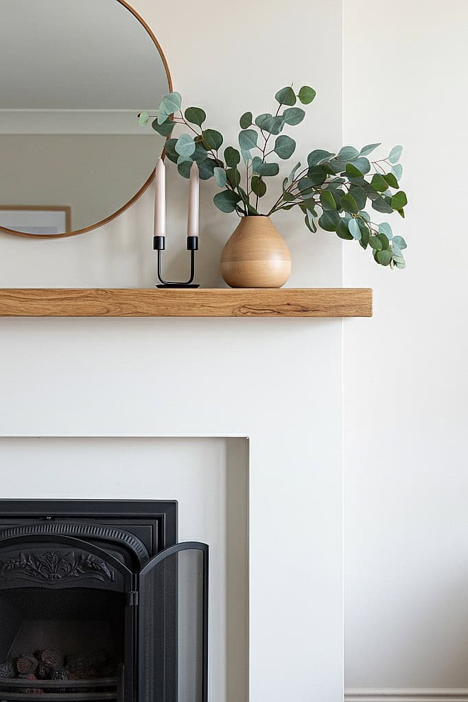 - Styling Tip: Embrace asymmetry. Place a tall vase with branches on one side of the mantle and a smaller grouping of two or three objects, like a small plant and a candle, on the other. Leave plenty of empty space to let the design breathe.
